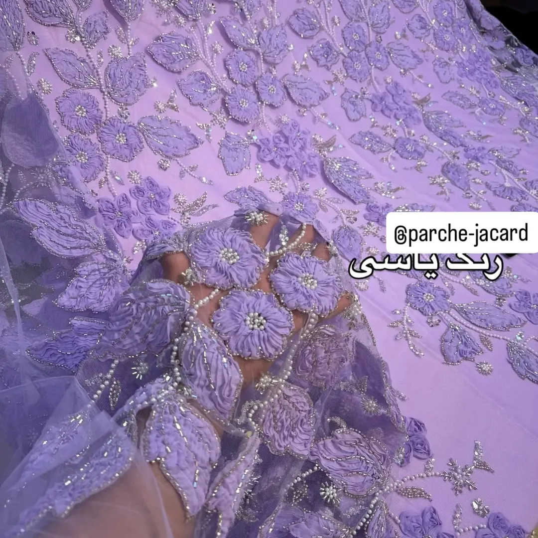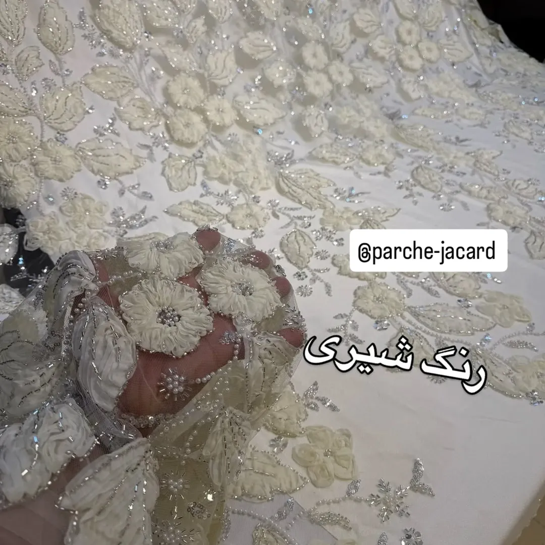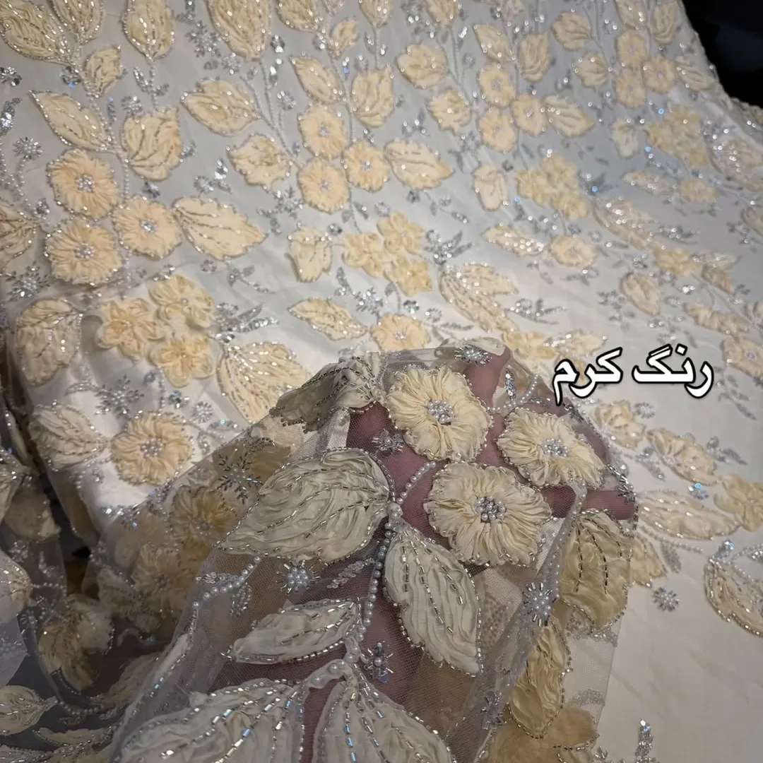 پارچه تور گل برجسته ملیله دوزی شیک و خاص عرض مفید ۱۴۵