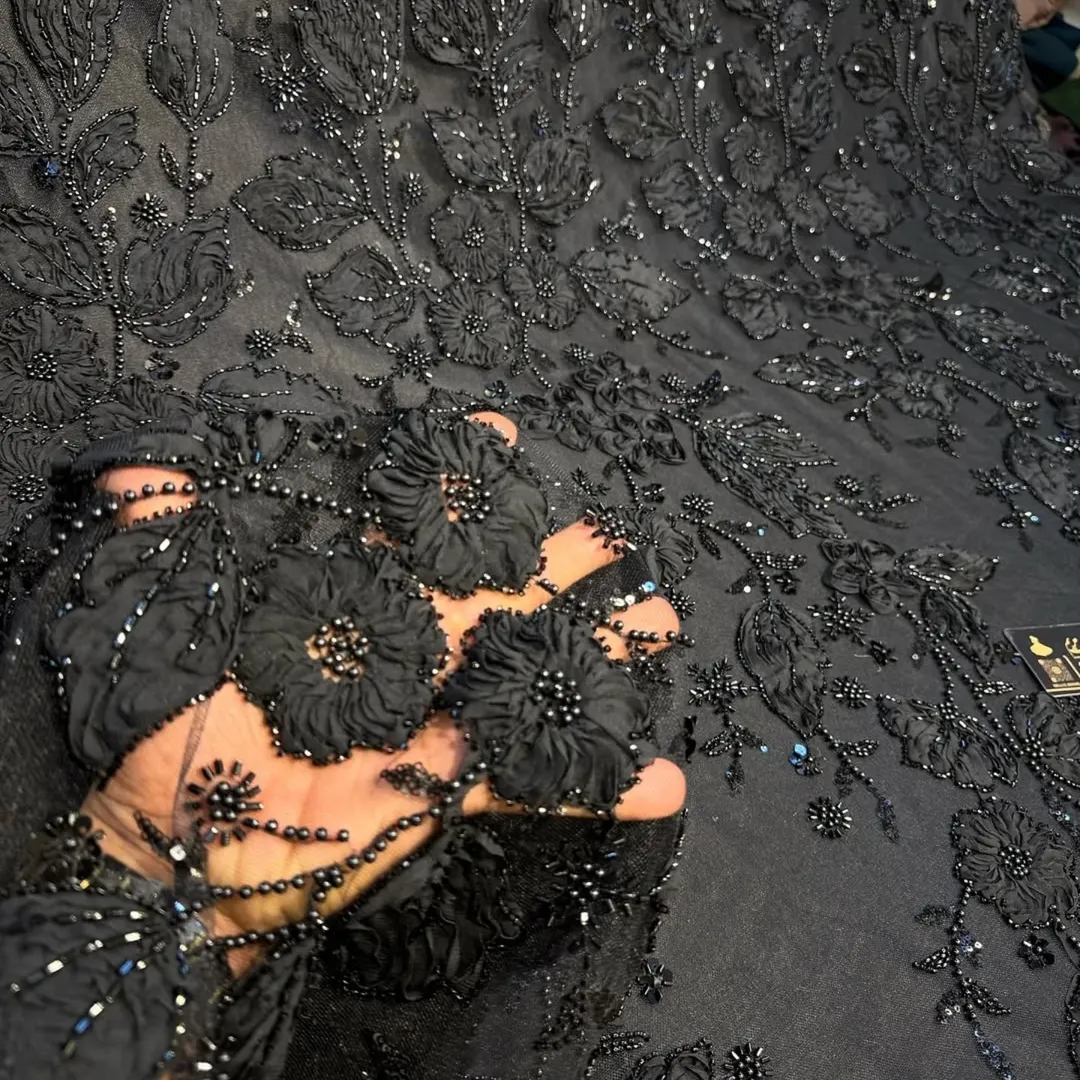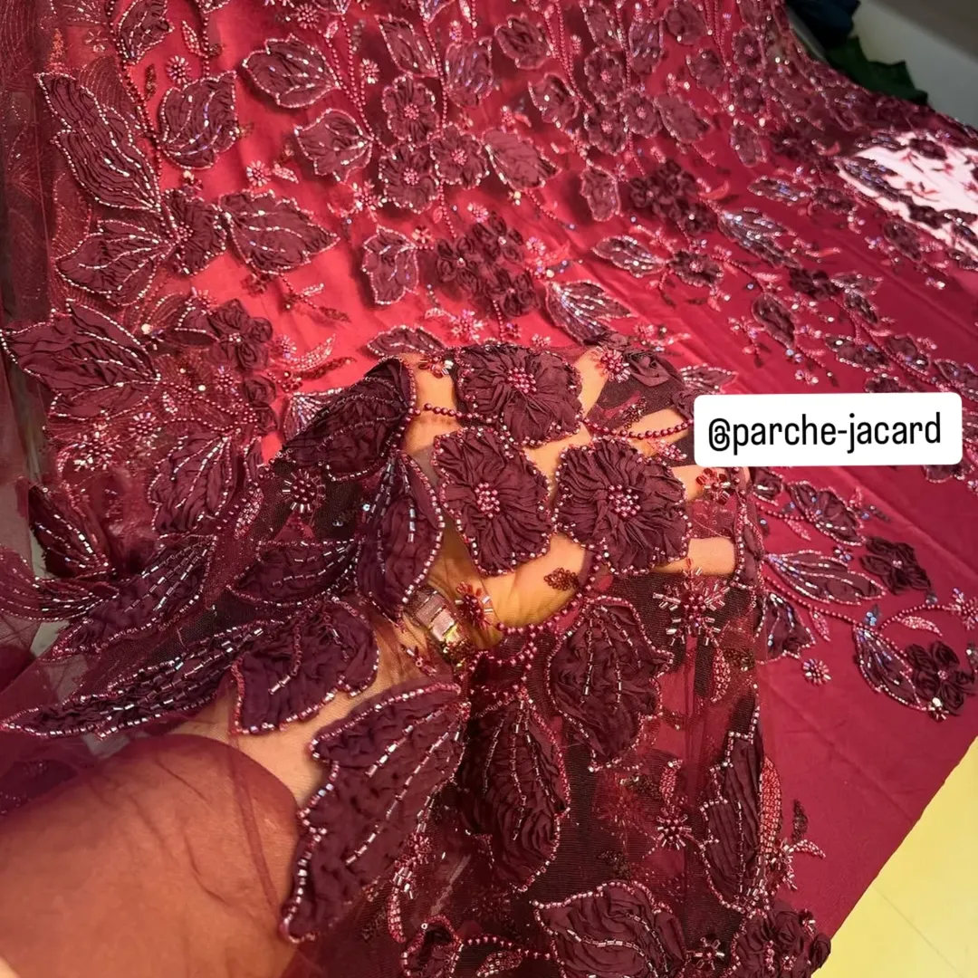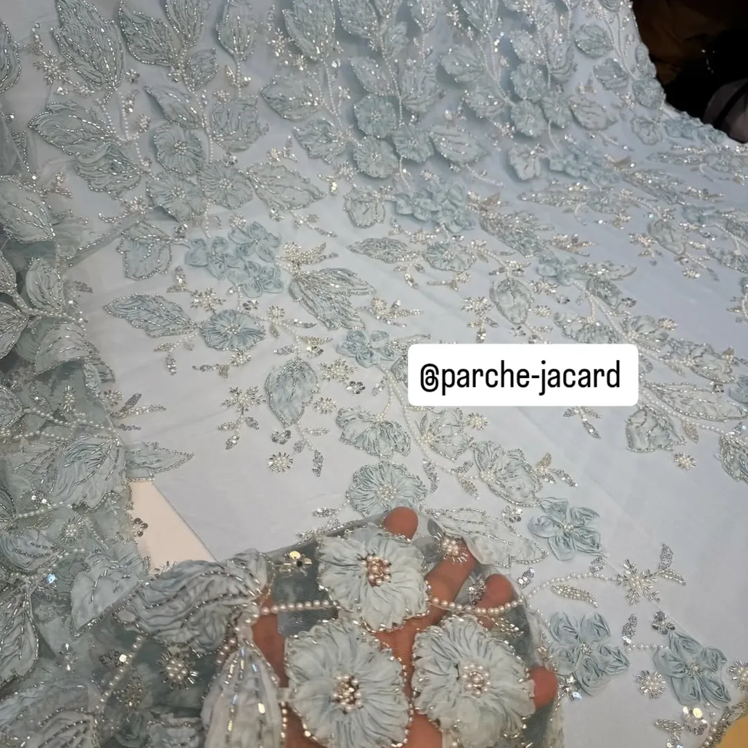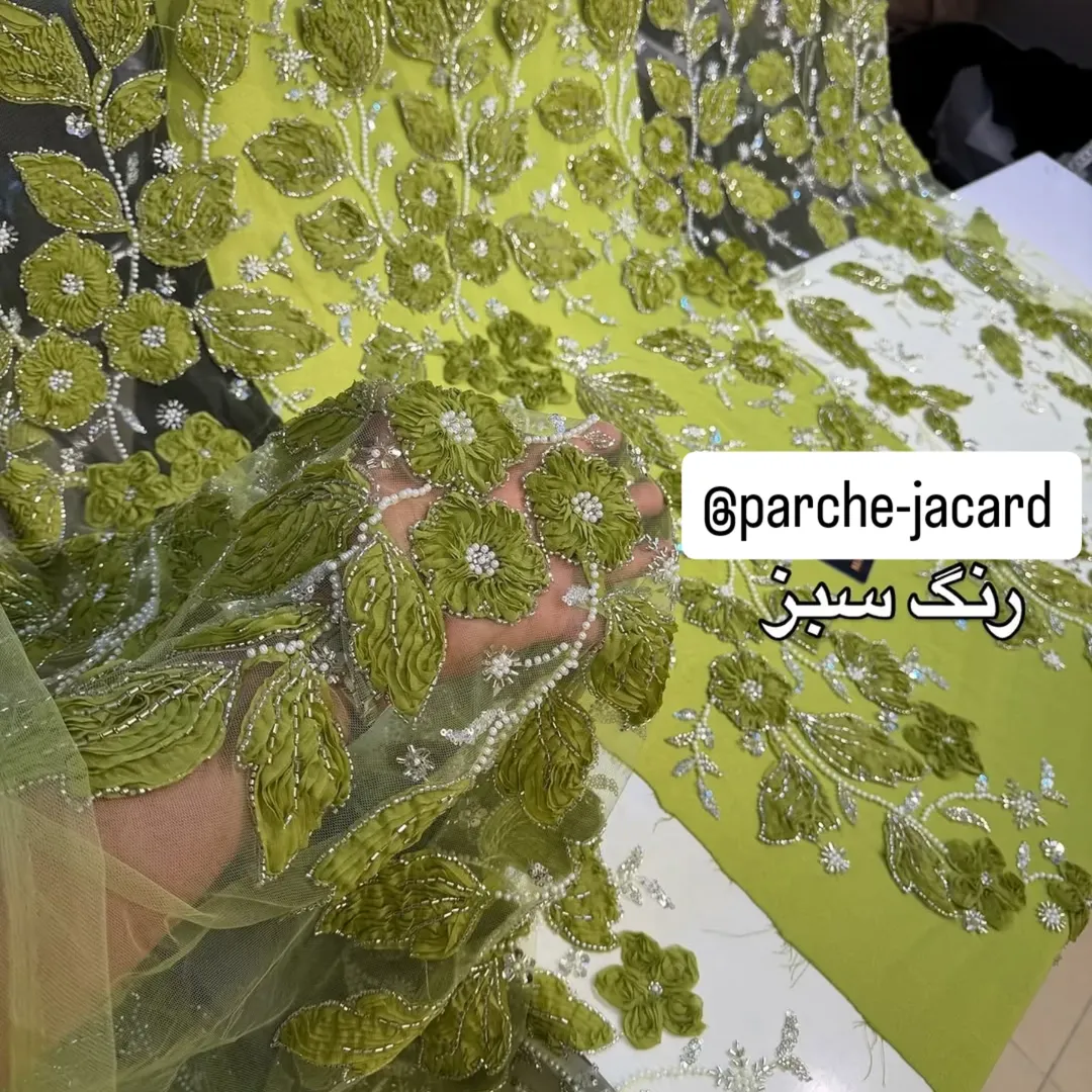 پارچه تور گل برجسته ملیله دوزی شیک و خاص عرض مفید ۱۴۵